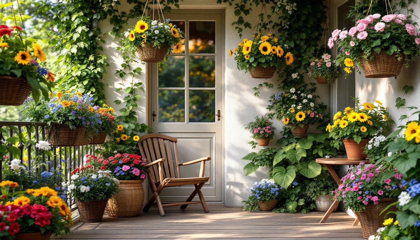 • Jardinières suspendues : Les jardinières en hauteur libèrent de l’espace à terre tout en ajoutant du charme.